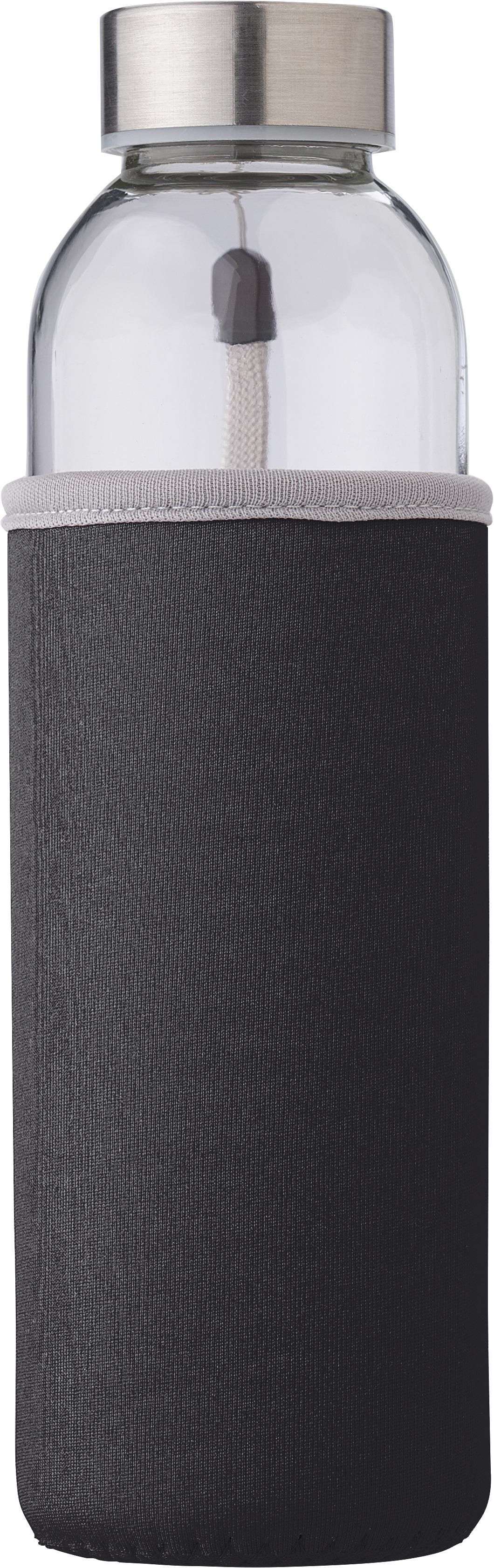Borraccia in vetro, include custodia in neoprene, tappo in metallo, cinturino da polso, adatto per le sole bevande fredde, capacità 500 ml