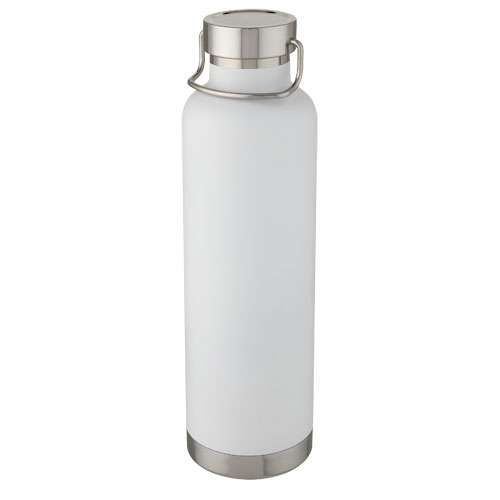 Ampia borraccia sportiva a doppia parete con struttura in acciaio inossidabile 18/8 e isolamento sottovuoto in rame che mantiene le bevande calde o fredde per diverse ore. La struttura impedisce anche la formazione di condensa sulla parte esterna della borraccia, mentre la finitura in polvere alla moda la rende estremamente resistente. Presenta un coperchio ermetico a vite e un anello resistente in acciaio inossidabile. Ampia apertura per riempirla, versare il contenuto e pulirla in modo semplice. Priva di BPA, testata e approvata ai sensi della normativa tedesca in materia di sicurezza alimentare (LFGB). Testata e approvata per il contenuto di ftalati secondo il regolamento REACH. Perfetta per essere riempita con cubetti di ghiaccio. La capacità è di 1 l. È consigliato lavarla a mano. Fornita in una confezione regalo in cartone riciclato.