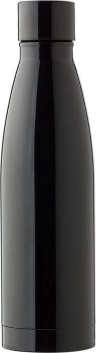 Borraccia in acciaio inox a doppia parete, tappo a vite, capacità 500 ml. A temperatura ambiente mantiene approssivatimente il liquido freddo e caldo per 12 ore.