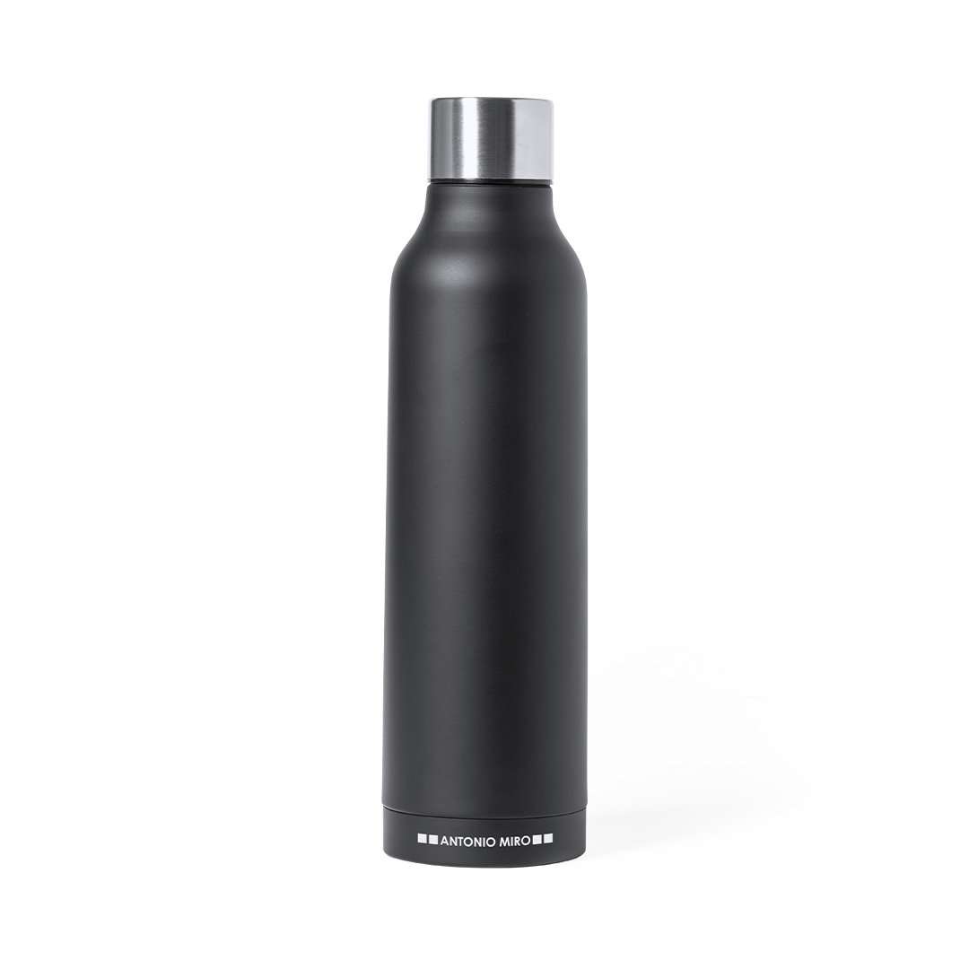 Thermos in acciaio inossidabile di Antonio Miró. Con una capacità di 500ml, a doppia paret, per una migliore e più durevole conservazione della temperatura. Con una sobria finitura nera satinata, logo Mirò sulla base e tappo a vite cromato. Confezionato in una scatola dal design attraente con il logo Mirò.