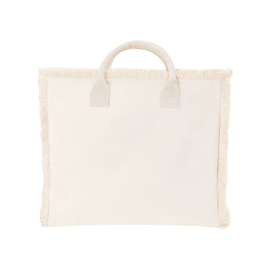 Borsa a frange realizzata principalmente in cotone di 360 g/m2. Con design pratico e moderno incorpora manici corti rinforzati. Include chiusura con cerniera per maggiore sicurezza e tasca interna con cerniera.