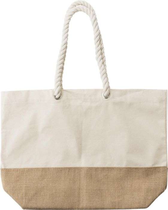 Shopping bag in cotone 280 gr/m², base in juta, grandi manici in cotone ritorto