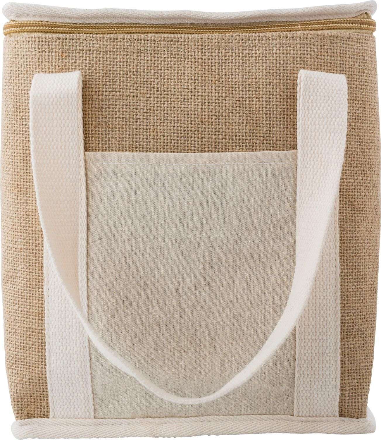 Borsa termica in juta, rivestimento interno in alluminio, vano frontale, chiusura lampo