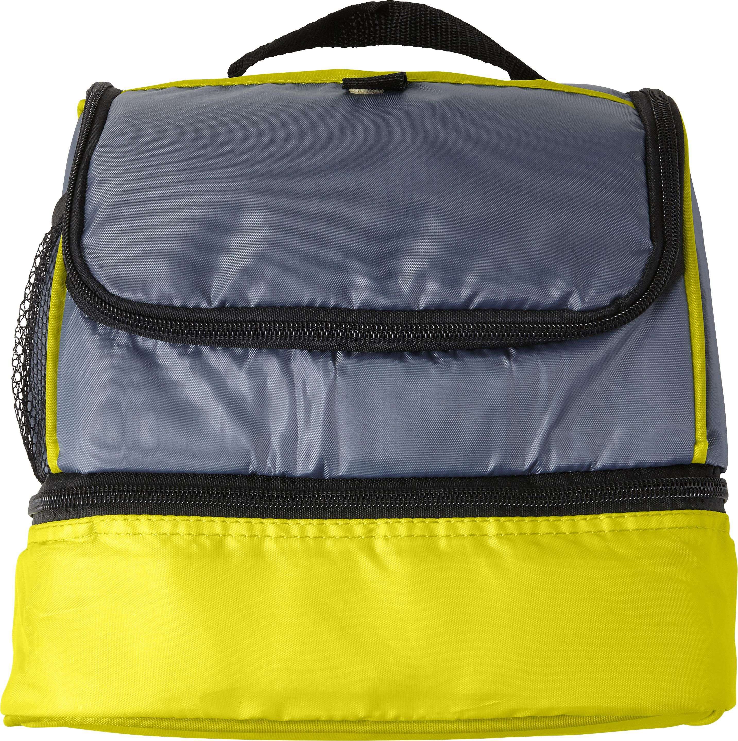Borsa termica bicolore, vari scomparti, rete laterale, maniglia, chiusura lampo, in poliestere 210 D