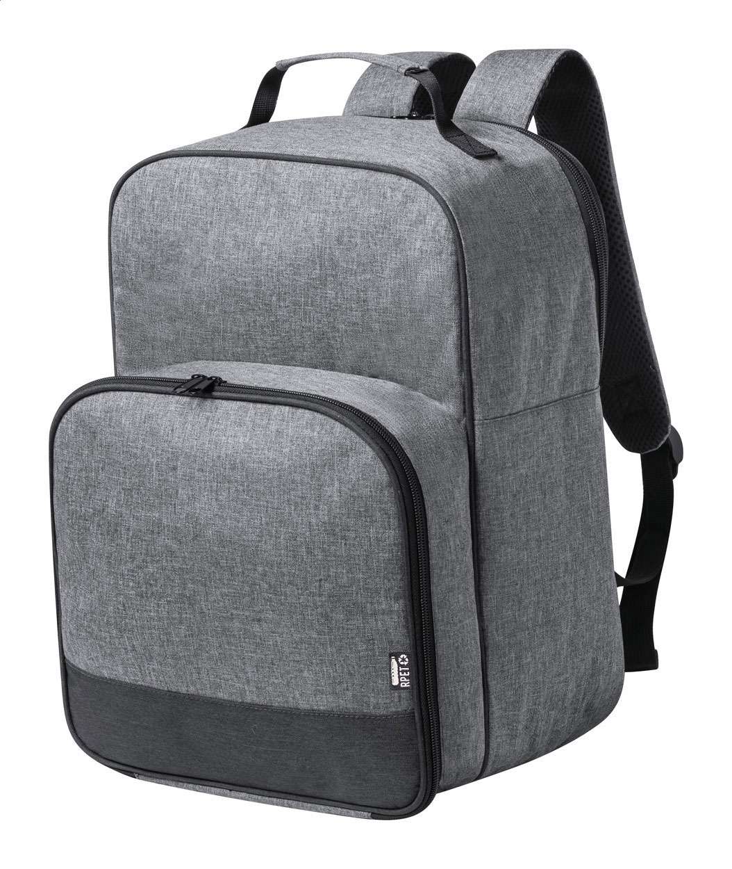 Zaino frigo da picnic in RPET con cinghie e schienale imbottiti, scomparto frigo con imbottitura in PEVA. Include 2 bicchieri, 2 coltelli, 2 cucchiai, 2 forchette, 2 piatti e 2 tovaglioli. Poliestere 600D RPET con etichetta RPET.