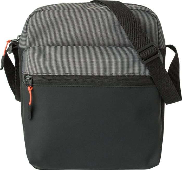 Borsa a tracolla in poliestere 500 D bicolore, tracolla regolabile con accenti di colore, piccola tasca frontale, ampio scomparto superiore e piccola tasca interna sul retro, tutte con chiusura lampo