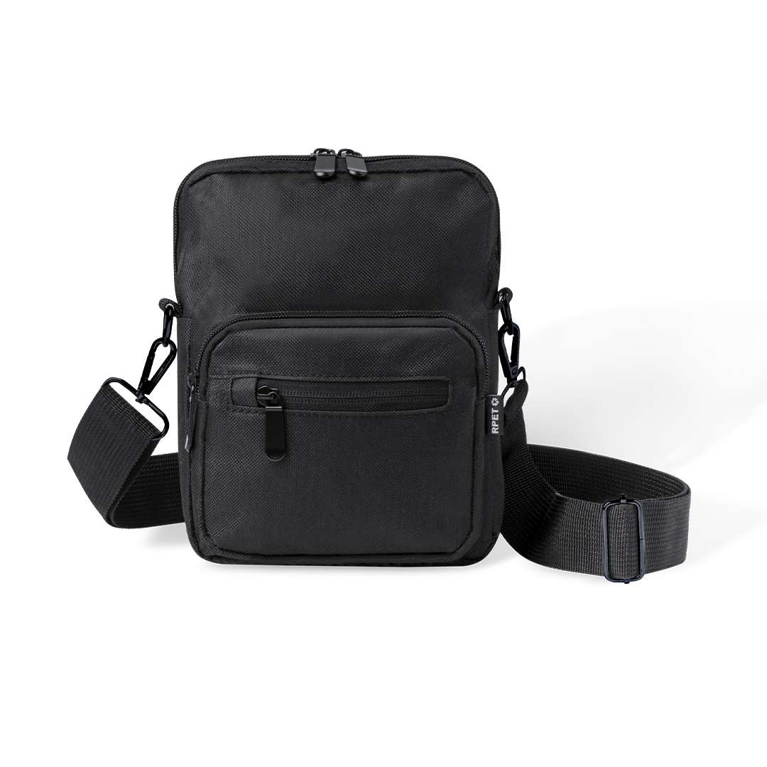 Borsa a tracolla realizzata in poliestere RPET 600D, dotata di una tasca centrale con zip e doppio tiretto e di due scomparti anteriori con chiusura a zip ad accesso rapido. Dotata di una tracolla regolabile per il massimo comfort e di un'etichetta distintiva RPET. Confezionata singolarmente in un sacchetto riciclato.Il materiale RPET è realizzato con plastica riciclata, favorendo così il riutilizzo dei rifiuti plastici e aiutando la sostenibilità del pianeta.