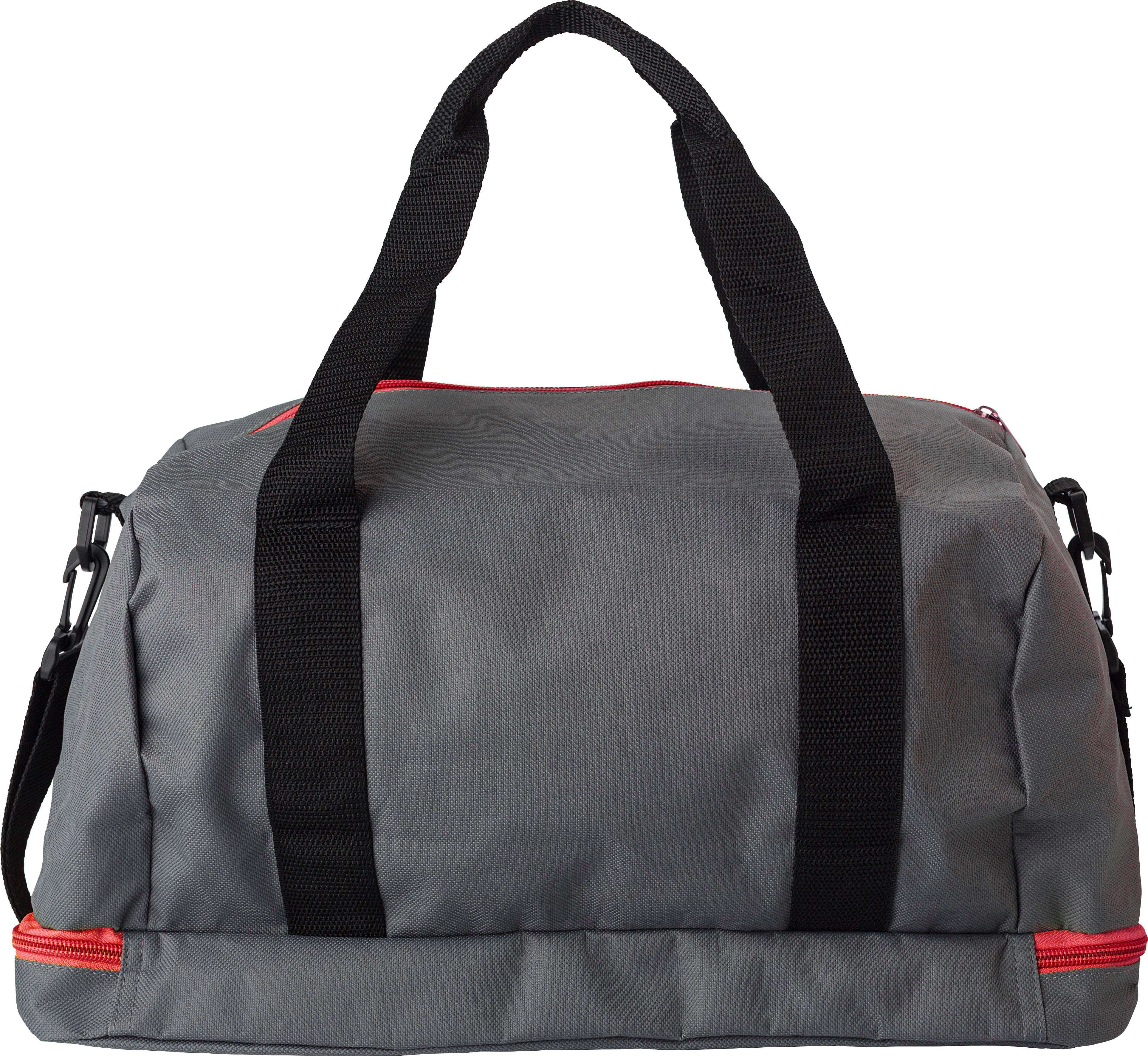 Borsa sportiva, vari scomparti di cui uno per le scarpe nella parte inferiore, chiusure a lampo colorate, manici e tracolla regolabili, in poliestere 600 D