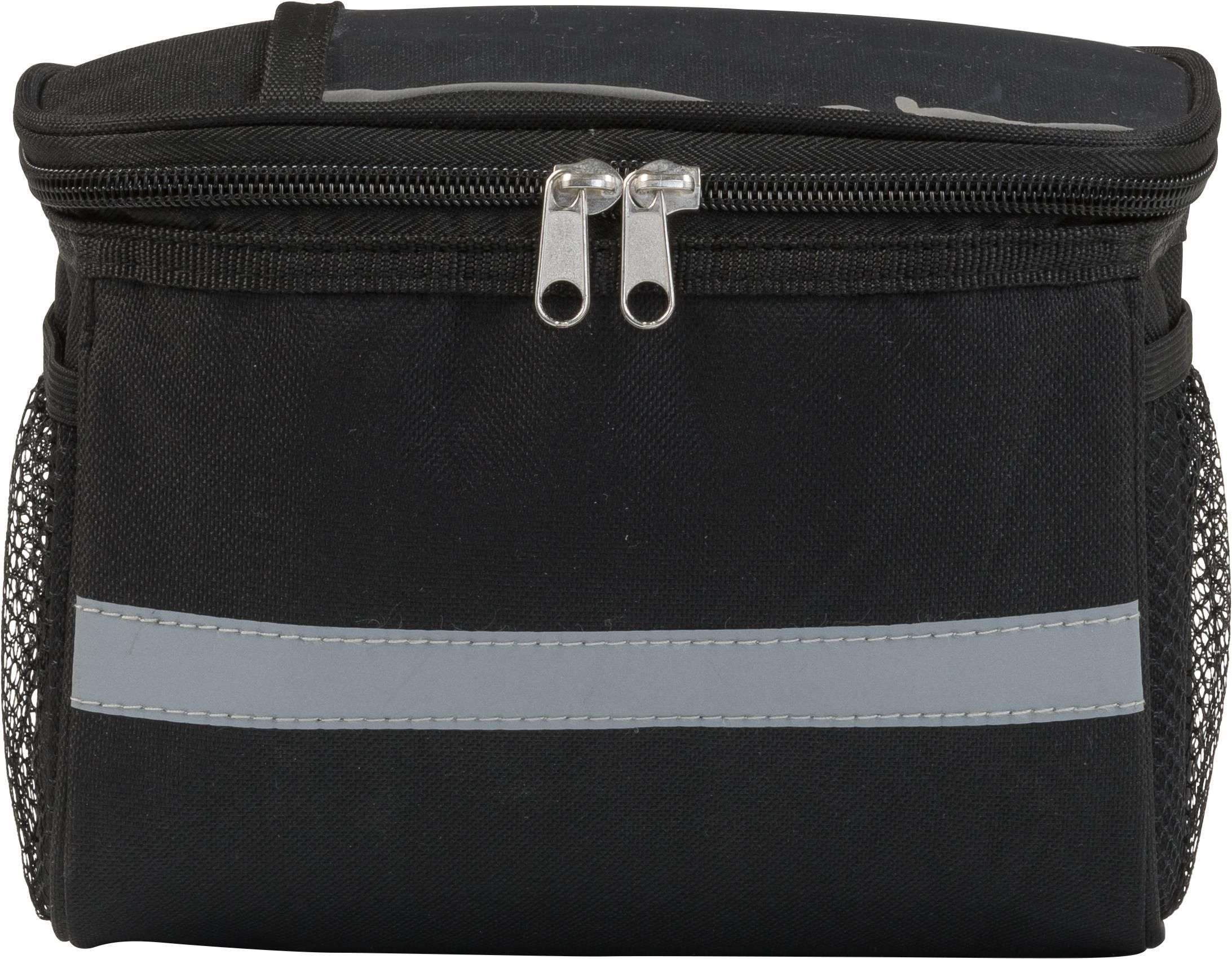 Borsa termica per bicicletta/moto, fodera PEVA, vano in PVC sulla parte superiore, banda catarifrangente, scomparti a rete su entrambi i lati, chiusura lampo, in poliestere 600 D