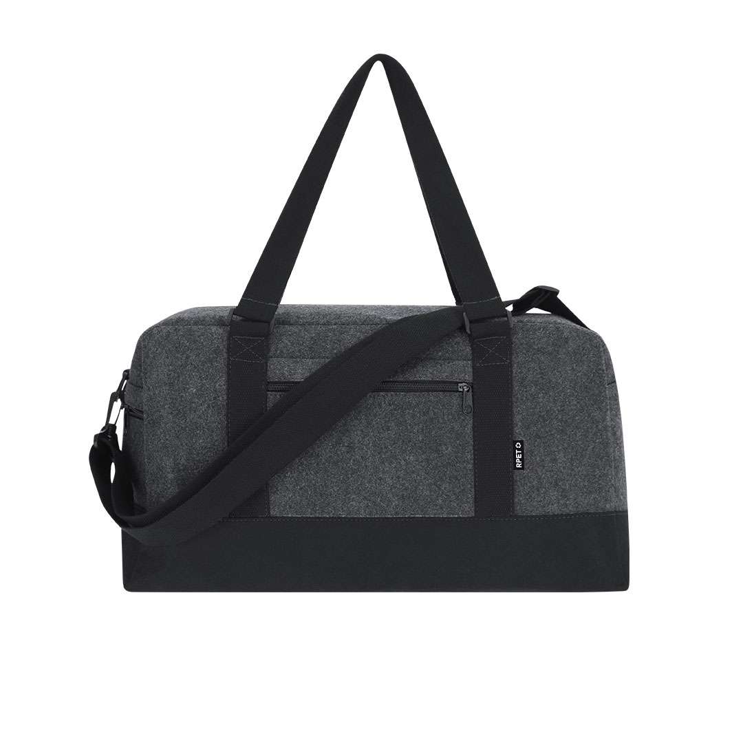 Borsa in feltro RPET. Con scomparto principale con chiusura a zip abbinata e base di colore nero e tasca esterna con zip. Include ampie maniglie di colore nero, nastro tracolla regolabile abbinato e distintivo RPET.Il feltro RPET è il risultato della combinazione del processo di riciclo di materiali plastici insieme alla tecnica millenaria di produzione del feltro, producendo un materiale eco-tendenziale che, oltre ad essere di origine riciclata, diventa anche riciclabile.