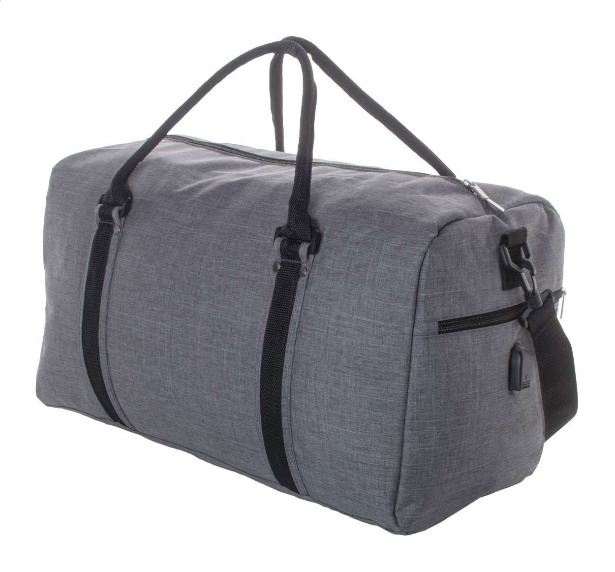 Borsa sportiva con scomparto e cerniera, tracolla e connettore USB integrato per power bank. Poliestere 600D.