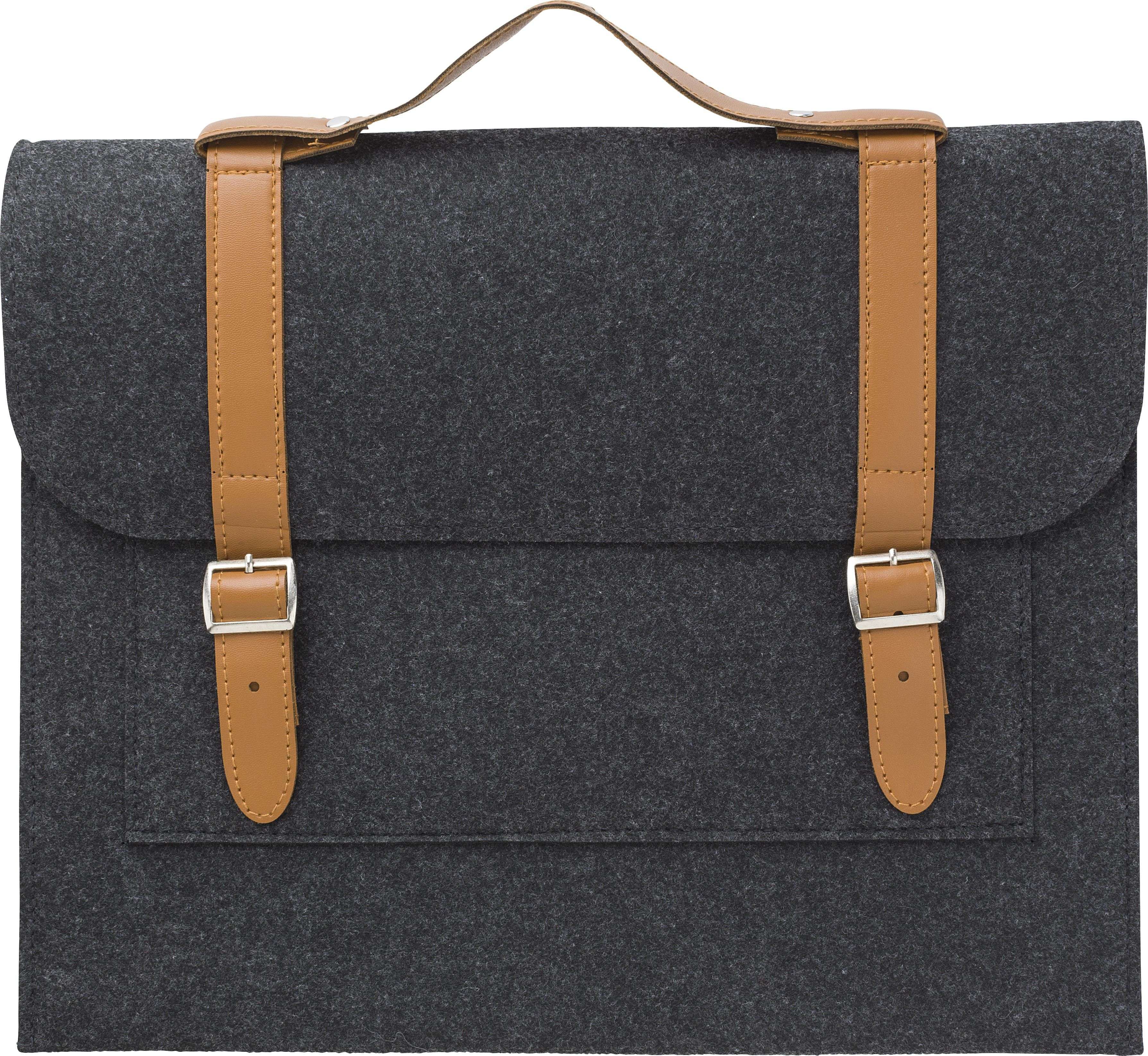 Borsa portadocumenti in feltro rPET, dettagli in PU, ampio scomparto, chiusura con due fibbie