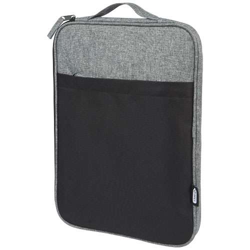 La custodia per portatile bicolore presenta un esterno realizzato in materiali riciclati certificati GRS al 100% ed è dotata di uno scomparto compatto e protetto che si adatta alla maggior parte dei portatili da 14". Dispone anche di una tasca anteriore con zip per contenere i documenti, i taccuini e i piccoli accessori e una maniglia per il trasporto, che la rende perfetta per gli spostamenti quotidiani.
