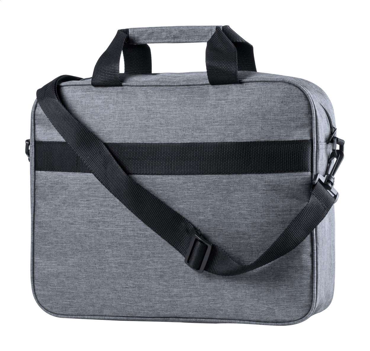 Borsa documenti con protezione RFID con scomparto imbottito per laptop e tablet (15" e 10"), schienale e tracolla imbottiti. Con connettore USB integrato per power bank. Poliestere 300D.