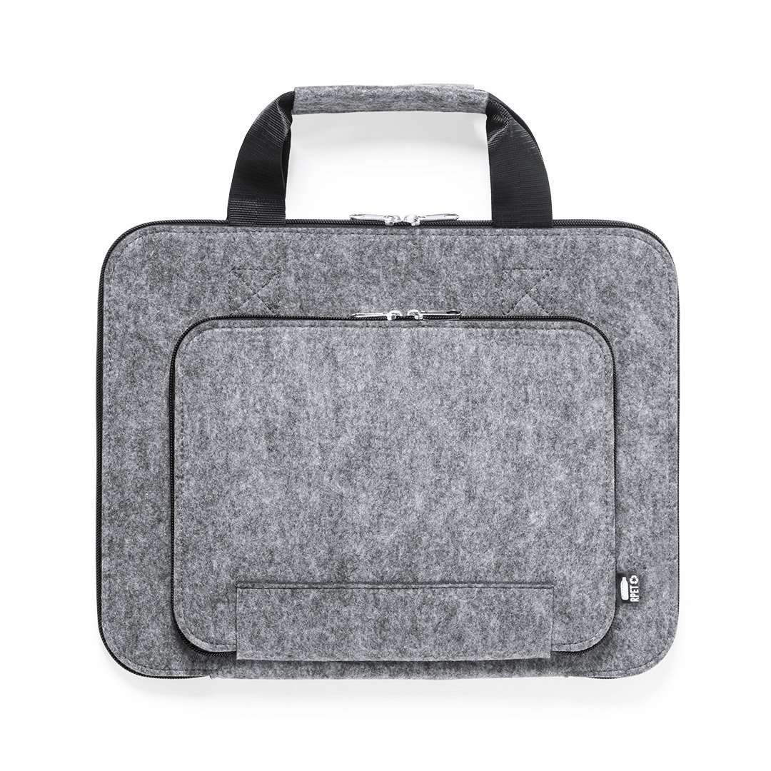 Portadocumenti dalla linea natura, in resistente feltro RPET riciclato, risultato della combinazione del processo di riciclaggio delle materie plastiche insieme alla tecnica millenaria di fabbricazione del feltro, ottenendo un materiale eco-trend che, oltre ad essere di origine riciclata, diventa anche riciclabile. Tasche principali e frontali con chiusura a zip e tiretti in metallo, con manici rinforzati abbinati e badge RPET sull'etichetta esterna.