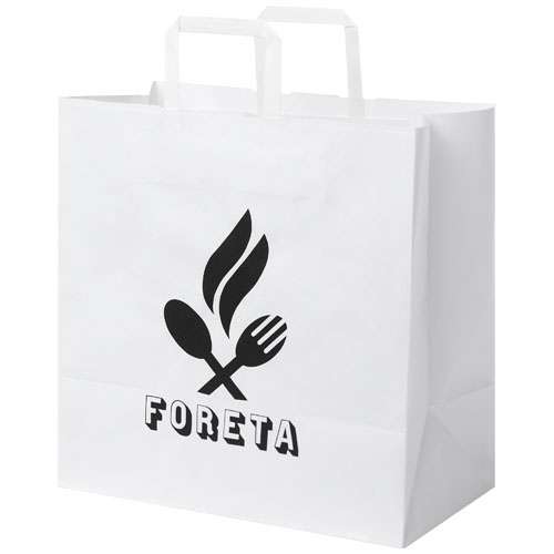 Sacchetto in carta kraft di dimensioni extra large (34 x 20 x 35 cm) con manici piatti. Realizzato in Europa con carta di provenienza responsabile (bianco da 90 g/m², marrone da 80 g/m²) è una soluzione per il confezionamento sostenibile e durevole con ampio spazio per una varietà di articoli. L'aspetto naturale e rustico della carta kraft aggiunge un tocco elegante adatto per qualsiasi occasione. Perfetto per lo shopping, i regali o gli eventi, questo sacchetto è un'alternativa ecologica alle borse di plastica. Scegli la praticità e la responsabilità ambientale con i nostri sacchetti di carta kraft. Dimensione: 34 x 20 x 35 cm.