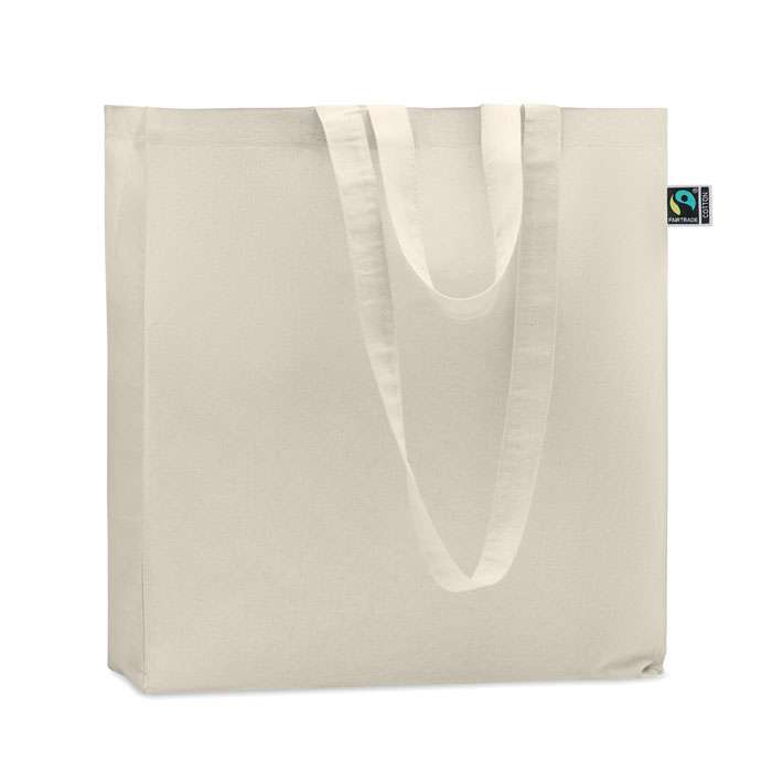Shopper in cotone equosolidale con manici lunghi e soffietti. 180 gr/m². Questo prodotto è certificato OEKO-TEX® STANDARD 100.