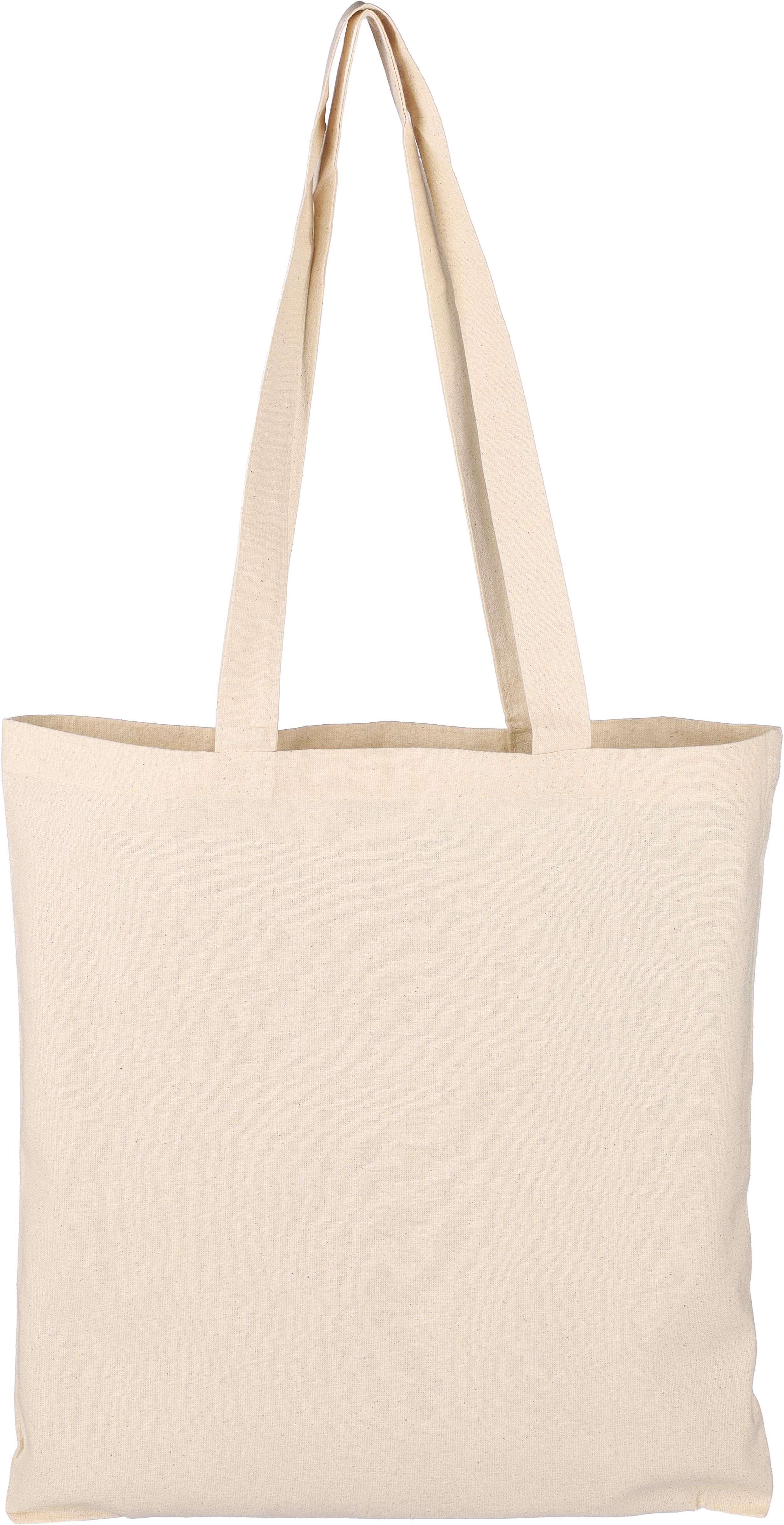 Shopping bag in cotone 180g/m², cotone naturale, manici lunghi, peso massimo trasportabile circa 8 kg. Questo prodotto è certificato OEKO-TEX® STANDARD 100.