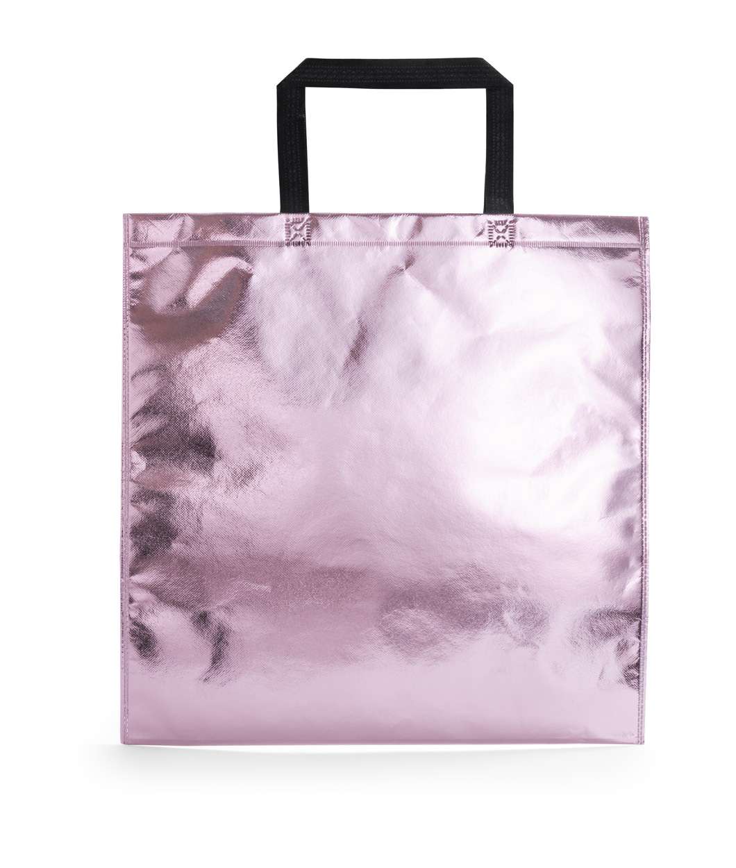 Borsa per la spesa in tessuto non tessuto laminato di colore metallico, con manici di media lunghezza.