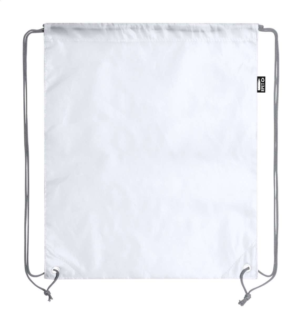 Sacca con coulisse in poliestere RPET, angoli rinforzati ed etichetta RPET.