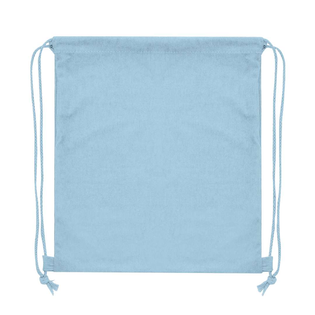 Sacca realizzata in resistente velluto a coste in poliestere. Finitura con cuciture, corde e rinforzi laterali in tinta. Disponibile in una gamma di colori.