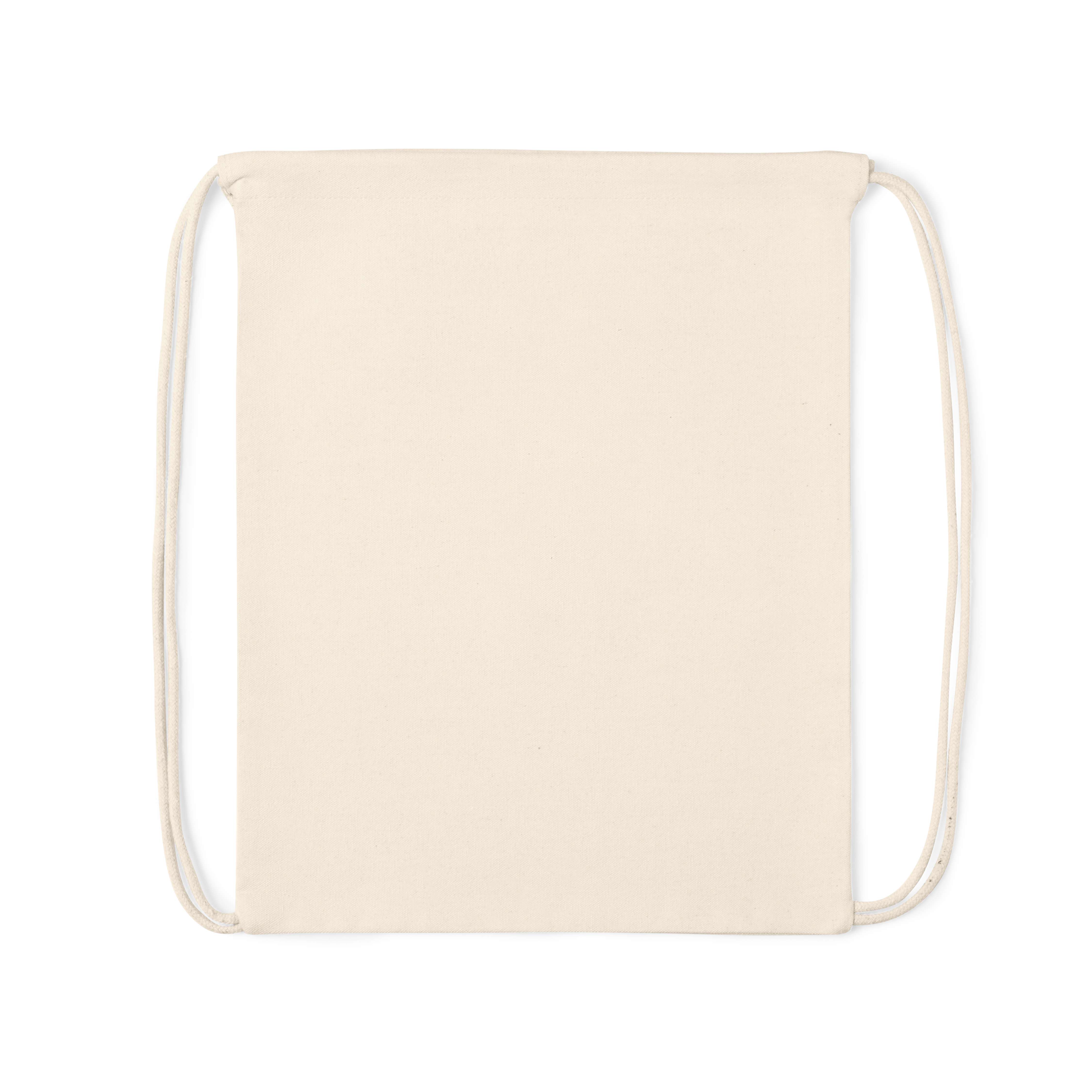 Zaino con coulisse della linea natura realizzato in cotone 180g/m2 con finitura naturale. Scomparto principale con coulisse in cotone.