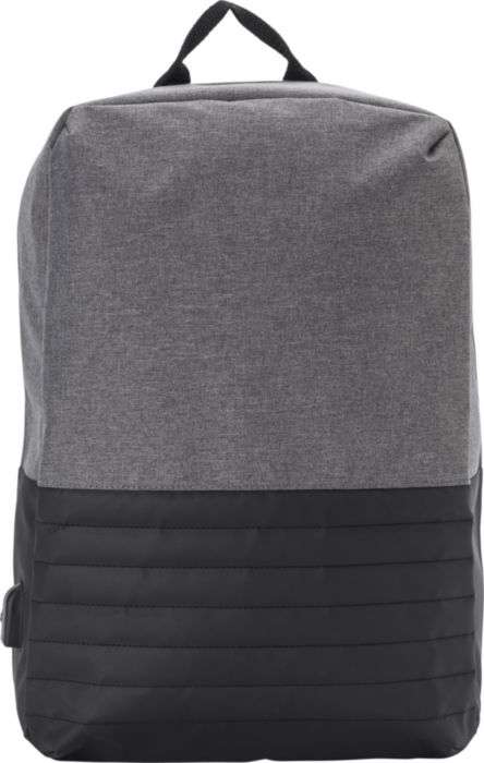 Zaino antitaccheggio bicolore, scomparto principale con chiusura lampo per computer portatile da 15 pollici, spallacci regolabili e schienale imbottiti, vari vani interni, sul lato porta USB con cavo interno, in poliestere 600/300 D e in PVC