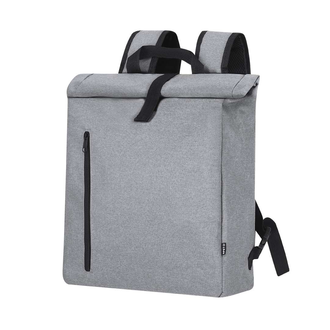 Zaino da bicicletta realizzato in resistente 600D RPET. Versatile e con chiusura a fibbia, include una pratica tasca frontale con zip. Sul retro è dotato di specifici attacchi universali per biciclette, che garantiscono maggiore comfort e sicurezza durante gli spostamenti. Dispone inoltre di spallacci imbottiti e regolabili per un trasporto più confortevole quando si stacca dalla bicicletta. Etichetta esterna con logo RPET.Il materiale RPET è realizzato con plastica riciclata per incoraggiare il riutilizzo dei rifiuti plastici e contribuire alla sostenibilità del pianeta.