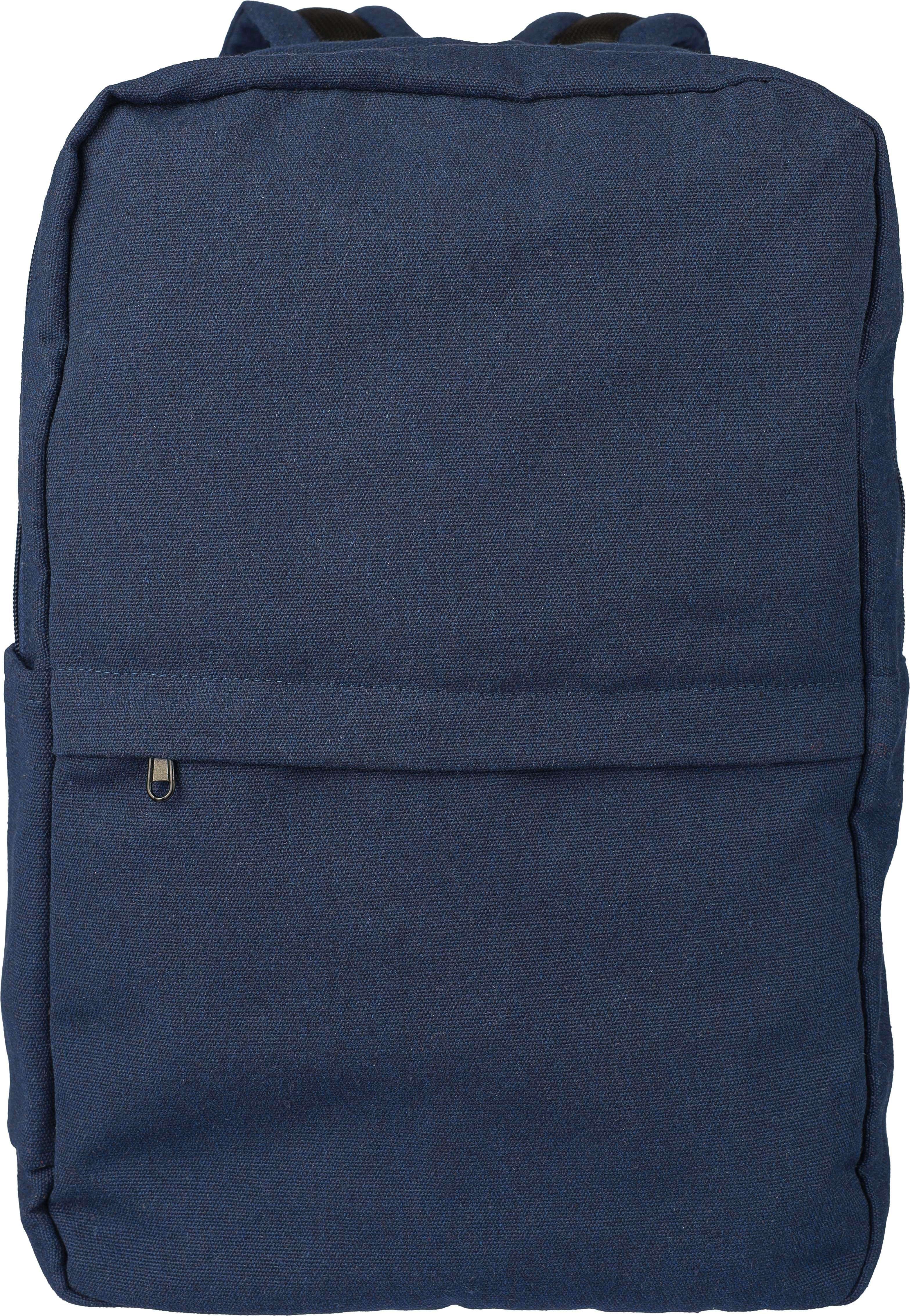 Zaino in policotone riciclato riciclato 330 g/m2 con fodera in poliestere 210D. Presenta un ampio scomparto con cerniera con scomparto imbottito per laptop da 15 pollici, due scomparti interni e due scomparti esterni, tra cui uno scomparto laterale e una piccola tasca anteriore con cerniera. Il design include spallacci imbottiti regolabili e una maniglia. Capacità: 14 l. Capacità di trasporto: 13 kg. Include etichetta rPet.