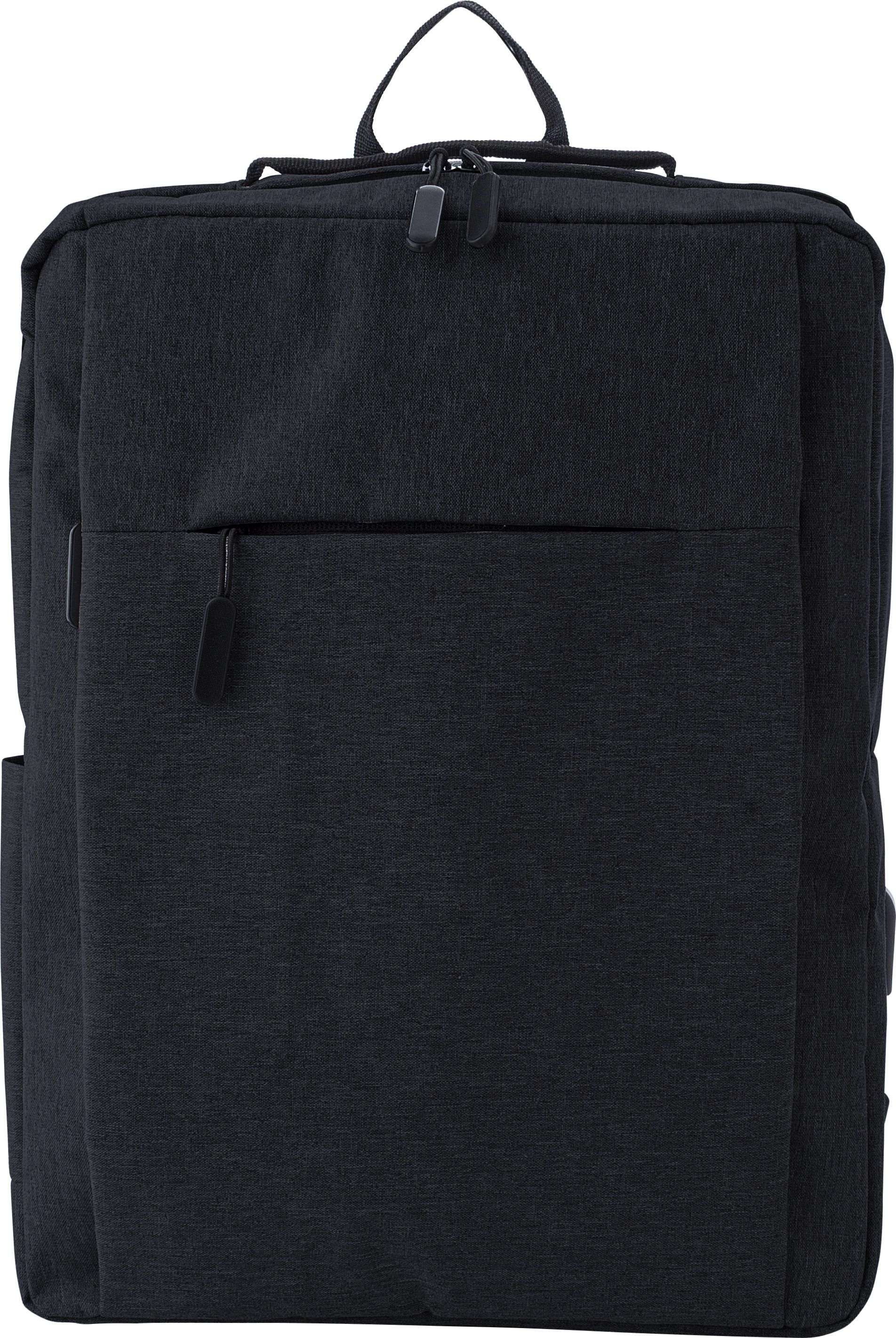 Zaino, adatto per computer portatile da 15 pollici, scomparto principale, tasca frontale, chiusura lampo, con uscita USB laterale, spallacci imbottiti regolabili, in poliestere 600 D