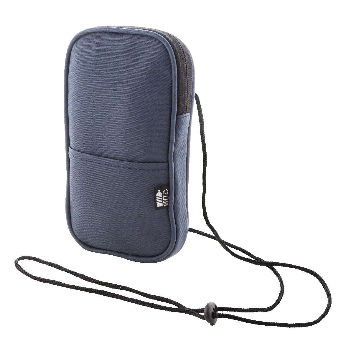 Tracolla per smartphone in poliestere 300D RPET, regolabile. Tasca frontale e laterale con cerniera. Scomparto principale con diverse tasche.