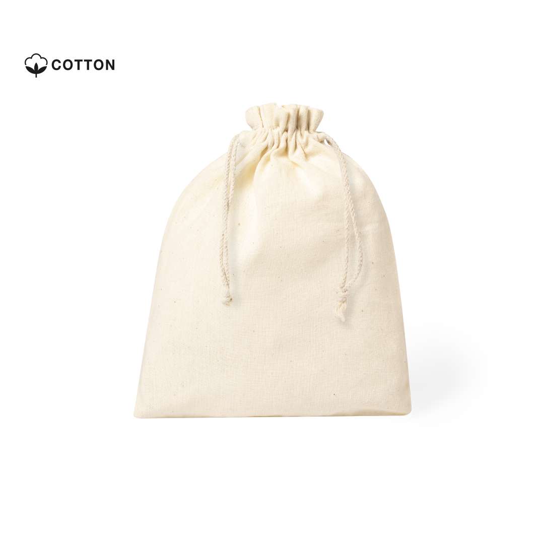 Bustina linea Nature in materiale cotone da 105 g / m2. Misura 15x21 cm, con finitura cucita e lacci in cotone autochiudenti.