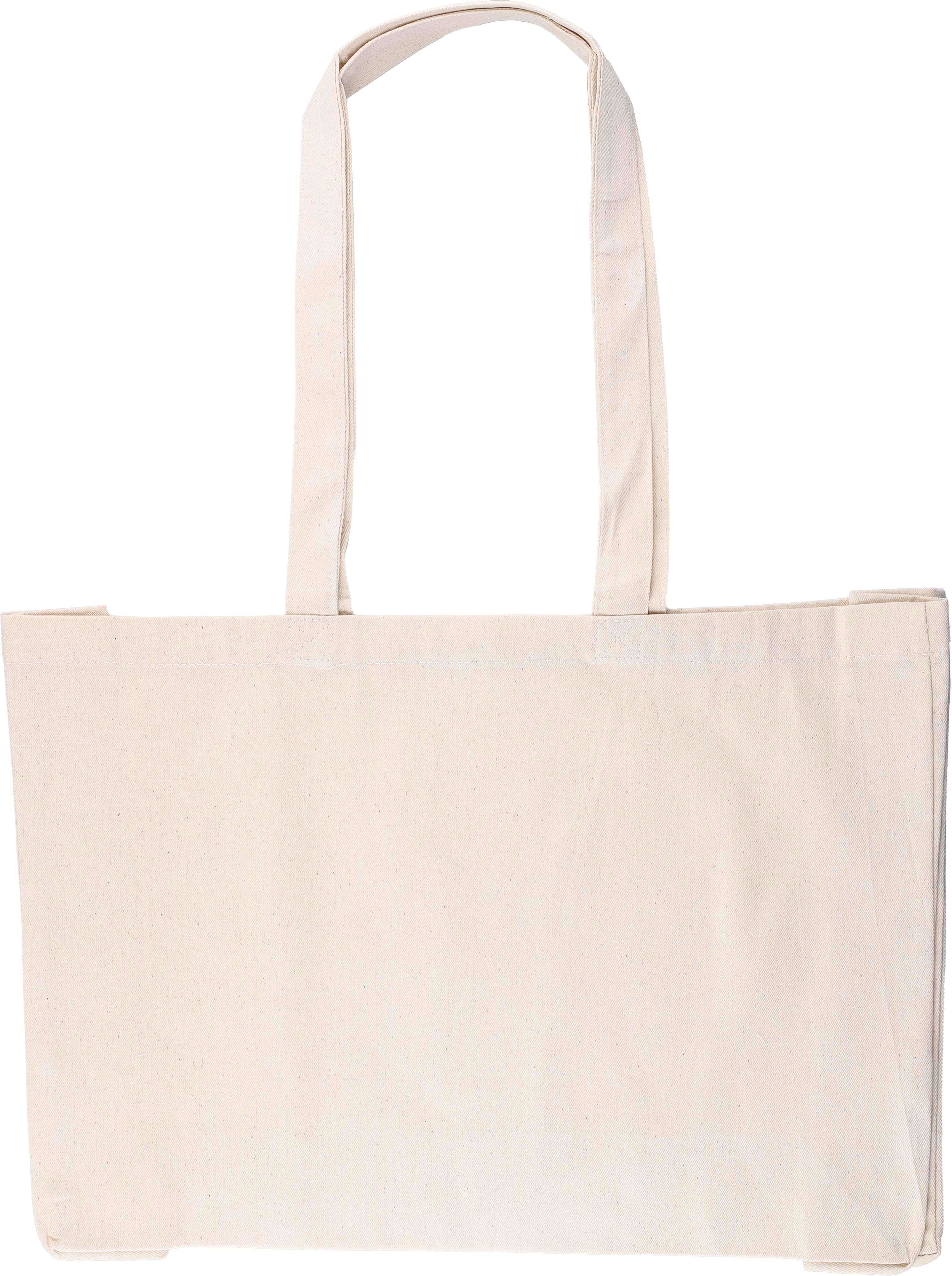 Shopping bag in cotone 220g/m2, cotone naturale, soffietto da 10 cm, manici lunghi, peso massimo trasportabile circa 8 kg. Questo prodotto è certificato OEKO-TEX® STANDARD 100.