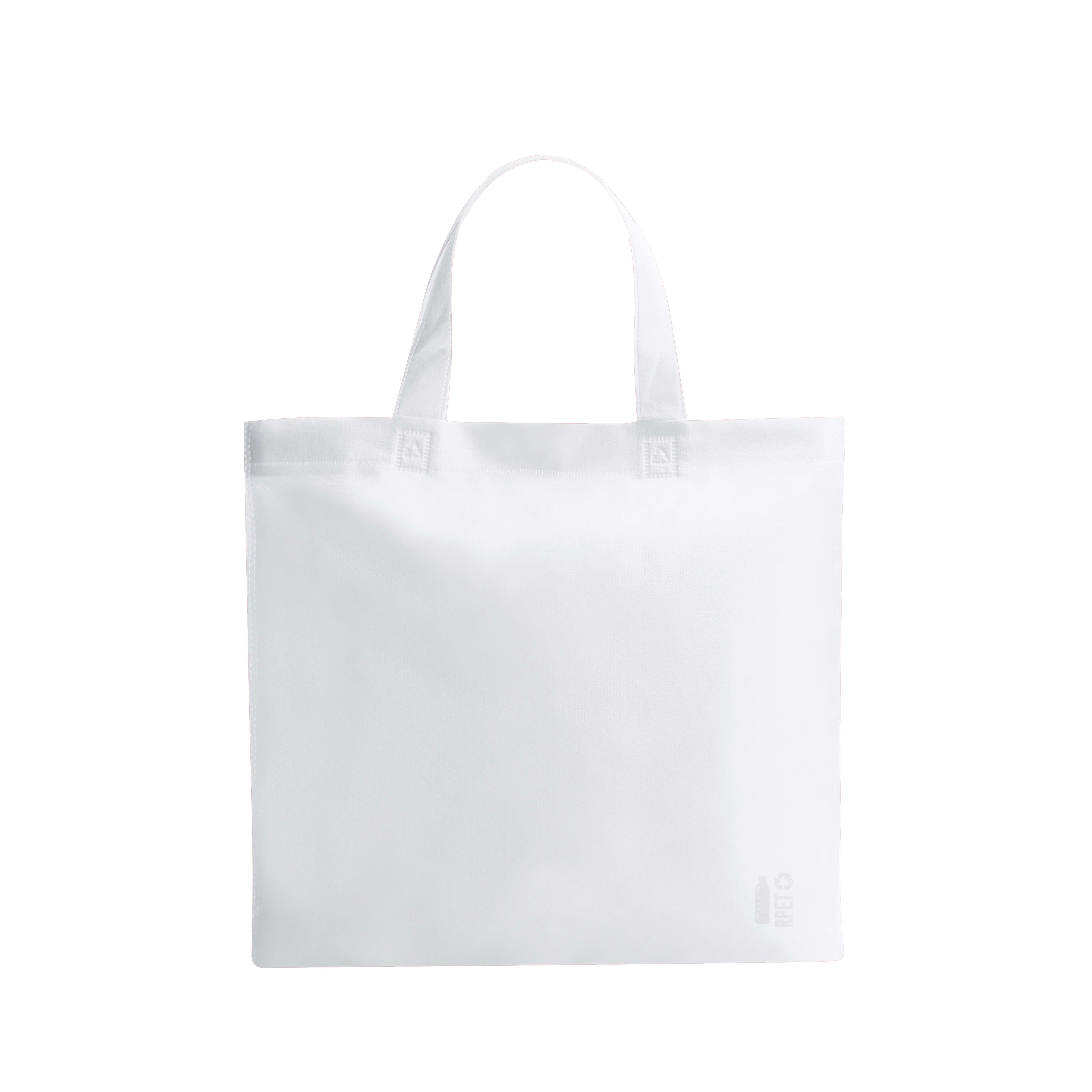 Borsa della linea natura realizzata in TNT RPET da 70 g/m2. Finiture termosaldate e manici corti rinforzati (36 x 3 cm). Disponibile in un'ampia gamma di colori, con logo RPET in basso a destra. Resistenza fino a 6 kg di peso.Il materiale RPET è realizzato con plastica riciclata, promuovendo così il riutilizzo dei rifiuti plastici e contribuendo alla sostenibilità del pianeta.