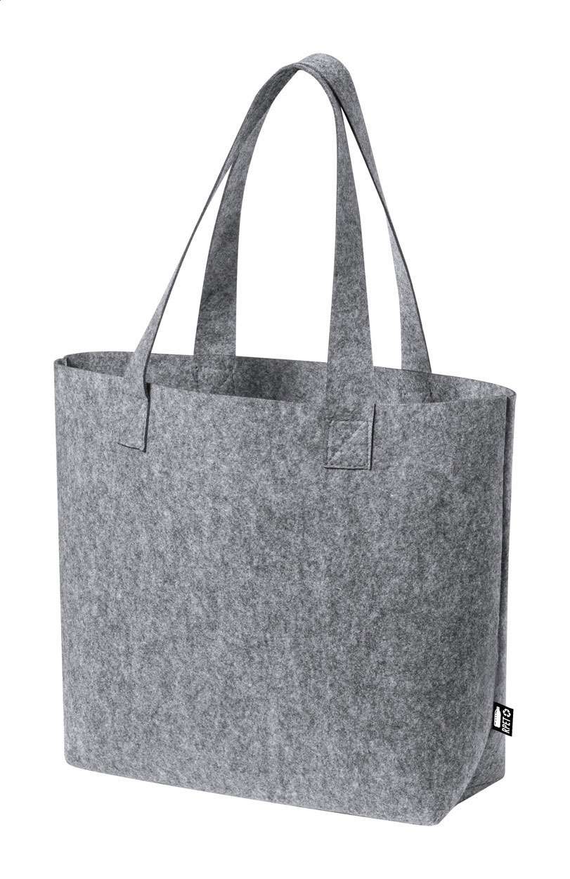 Borsa per la spesa in feltro RPET con manici lunghi, soffietto sul fondo ed etichetta RPET.