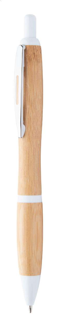 Penna a sfera di bambù con parti in plastica colorate e clip in metallo. Con refill blu.