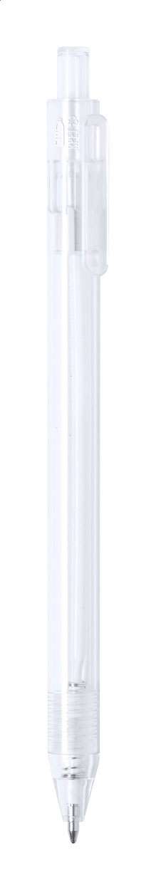 Penna a sfera in plastica RPET trasparente con pulsante colorato. Con refill blu.