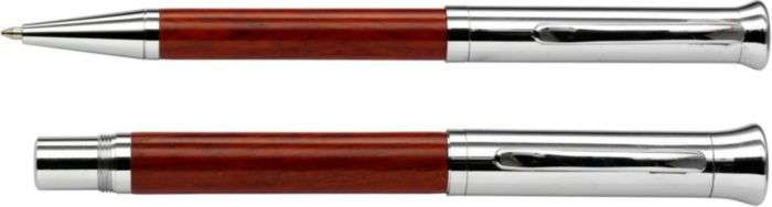 Parure in legno, penna a sfera e rollerball in legno, componenti in metallo, in elegante astuccio in legno, refill nero