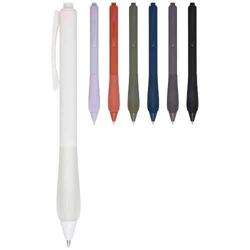 Penna a sfera in plastica riciclata con fusto gommato e impugnatura in TPR. Colore dell'inchiostro: Nero. Capacità di scrittura: 1000 metri. Dimensione del pennino: 1,0 mm.Colore inchiostro: Black