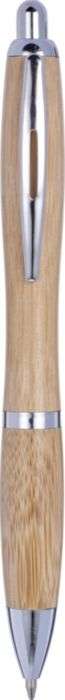 Penna a sfera in bamboo con meccanismo a scatto, componenti argentati, refill nero