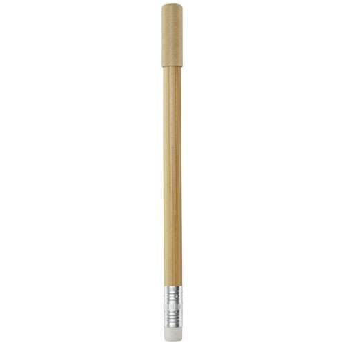 La penna in bambù senza inchiostro Krajono non richiede cartucce d'inchiostro o ricariche. La punta di grafite nera della penna è progettata per lasciare tracce visibili sulla superficie di scrittura. La scelta di una penna in bambù senza inchiostro favorisce pratiche più sostenibili e incoraggia l'utilizzo di materiali rinnovabili. La penna è dotata di una gomma nella parte superiore. Capacità di scrittura: 1500 metri. Dimensione del pennino: 0,5 mm.Colore inchiostro: Black