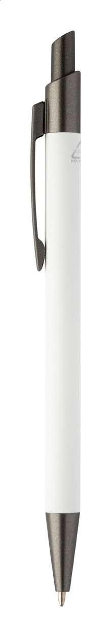 Penna a sfera in alluminio riciclato con fusto gommato e componenti in color canna di fucile. Fornita con refill blu.
