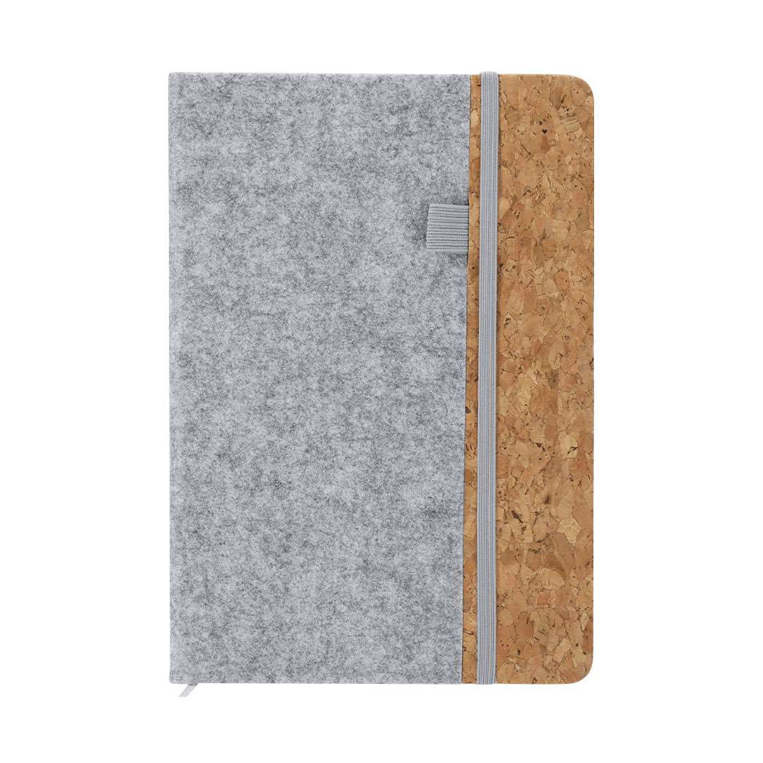 Blocco note con copertine rigide realizzate in combinazione di feltro RPET e sughero. Include 80 fogli a righe con elastico di chiusura per penne sulla copertina, nastro elastico di chiusura e segnalibro a tono. Include distintivo RFELT.Realizzato con elementi vegetali per favorire l'uso di materie prime naturali e ridurre le emissioni inquinanti.Il feltro RPET è il risultato della combinazione del processo di riciclo dei materiali plastici con la tecnica millenaria di produzione del feltro, dando come risultato un materiale di eco-tendenza che, oltre ad essere di origine riciclata, è anche riciclabile.