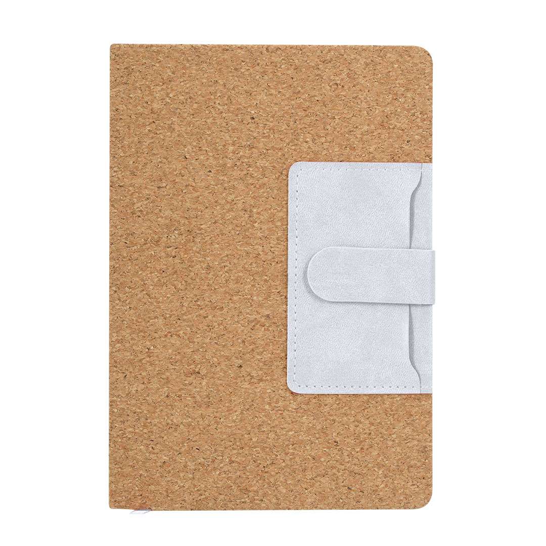 Blocco note a copertina rigida in combinazione di sughero naturale e PU. Include tasca in PU sulla copertina, ideale per carte. Con chiusura magnetica, 80 pagine di disposizione a righe e segnalibro coordinato.Realizzato con elementi vegetali per promuovere l'uso di materie prime naturali e ridurre le emissioni inquinanti.