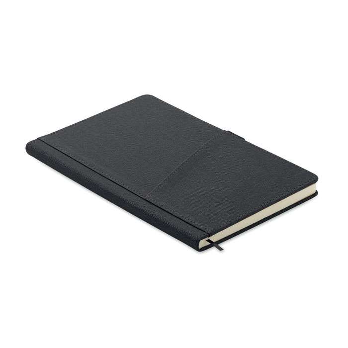 Notebook A5 con copertina rigida in PU e tasca frontale per il telefono. Rilegato con custodia. 160 pagine a righe in carta riciclata (80 fogli). Segnalibro a nastro abbinato. FSC®-certified | FSC MIX CREDIT, P7.1, FSC-C213206