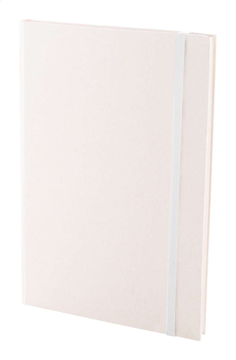 Quaderno in carta riciclata di cartone del latte con copertina rigida, 80 fogli a righe ed elastico in colore coordinato. Formato A5.