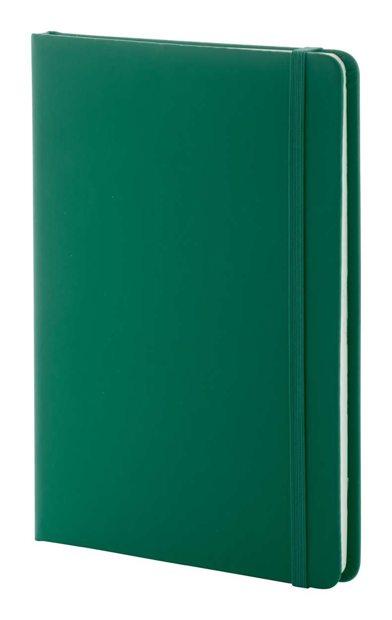 Quaderno con copertina in PU riciclato da 100 fogli in carta riciclata a righe. Segnalibro in colore coordinato ed elastico. Formato A5.