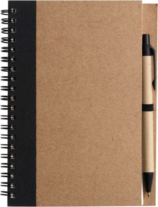 Taccuino in carta riciclata e tela, dotato di penna a sfera, con componenti biodegradabili, refill blu