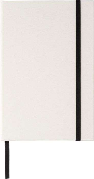 Taccuino in cartone del latte riciclato, formato +/- A5, 80 pagine, elastico e segnalibro, realizzato per il 70% in cartone del latte riciclato e per il 30% in carta riciclata, include logo ‘cartone del latte’ stampato a caldo sul retro