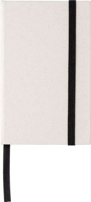 Taccuino in cartone del latte riciclato, formato +/- A6, 80 pagine, elastico e segnalibro, realizzato per il 70% in cartone del latte riciclato e per il 30% in carta riciclata, include logo ‘cartone del latte’ stampato a caldo sul retro